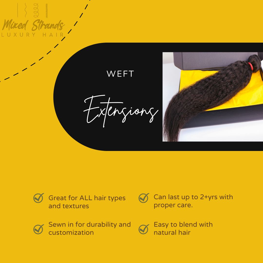 Wefts give you the most versatility when it comes to extensions. The customization into clip-ins, tape-ins or a full wig, are endless. If you travel or need a seasonal look, these extensions offer longevity and durability. So, take a look and let the wefts move you!