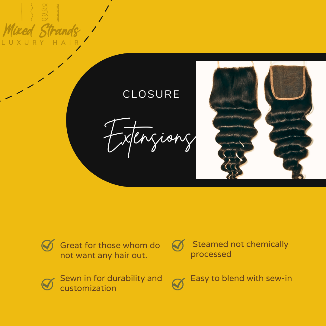 Closures offer a way to not have any hair left out after a sew-in so that your natural hair can rest. Mimicking the scalp you can create a shallow or deep bang or a side part. Closures give you so many options to style your hairline.