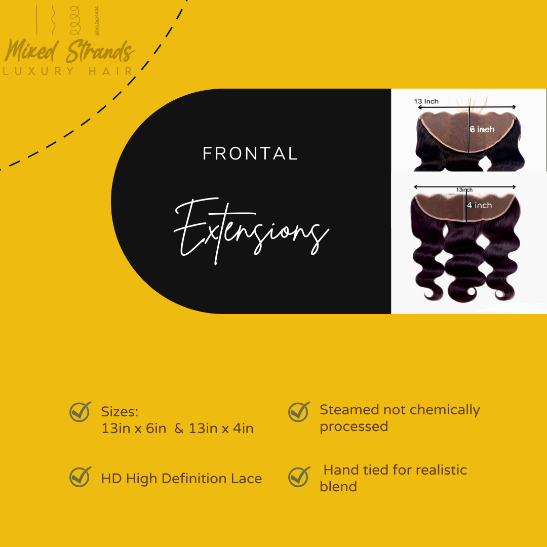 Frontals give you maximum versatility from ear to ear mimicking the entire front hairline. The wide range of parting and hairstyle options are endless. If you have fine or thinning hair in the front hairline to the crown, the frontal is a great option for coverage and the HD lace blends into the skin for a seamless look.